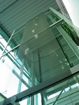 2006This work of art was made for a land art exposition, but after thatm when the fallen leaved had dried, it was placed in the building of a broadcast company. The entry of this building is very transparent, much glass, also stairs of glass and the elevator house is also transparant.My work was layed over this elevator house, and the footprints go up on one side, down on the other side.