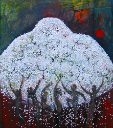 Gogyoshi dichter Taro Aizu schreef zijn gedichten na de ramp bij Fukushima. In dit boek zijn ze te lezen in het japans, Engels en Frans. op de voorplaat mijn "Takuzakira" kersenbloesemfeest, waar de kersenbloesem vooral vluchtig is, en alweer over de dansende mensen aar beneden dwarrelt. Het Ukyio-e van Japan naast het Vanitas idee van het westen